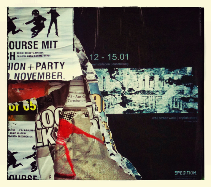 eingequetscht zwischen kommerziellen werbeflächen, schaufenstern und hauseingängen trotzen sie plakatierverboten, städtischen ordnungs- und sauberkeit=sicherheits-diskursen,